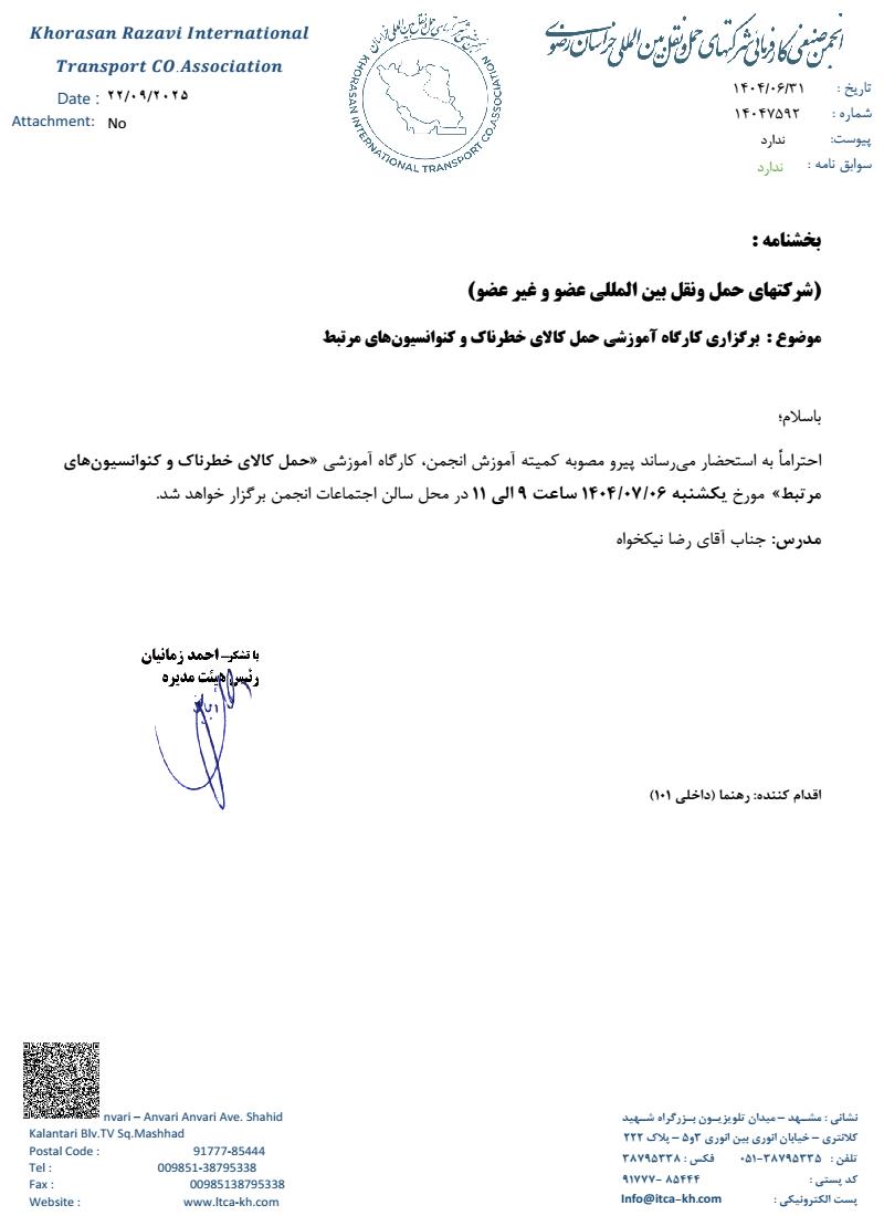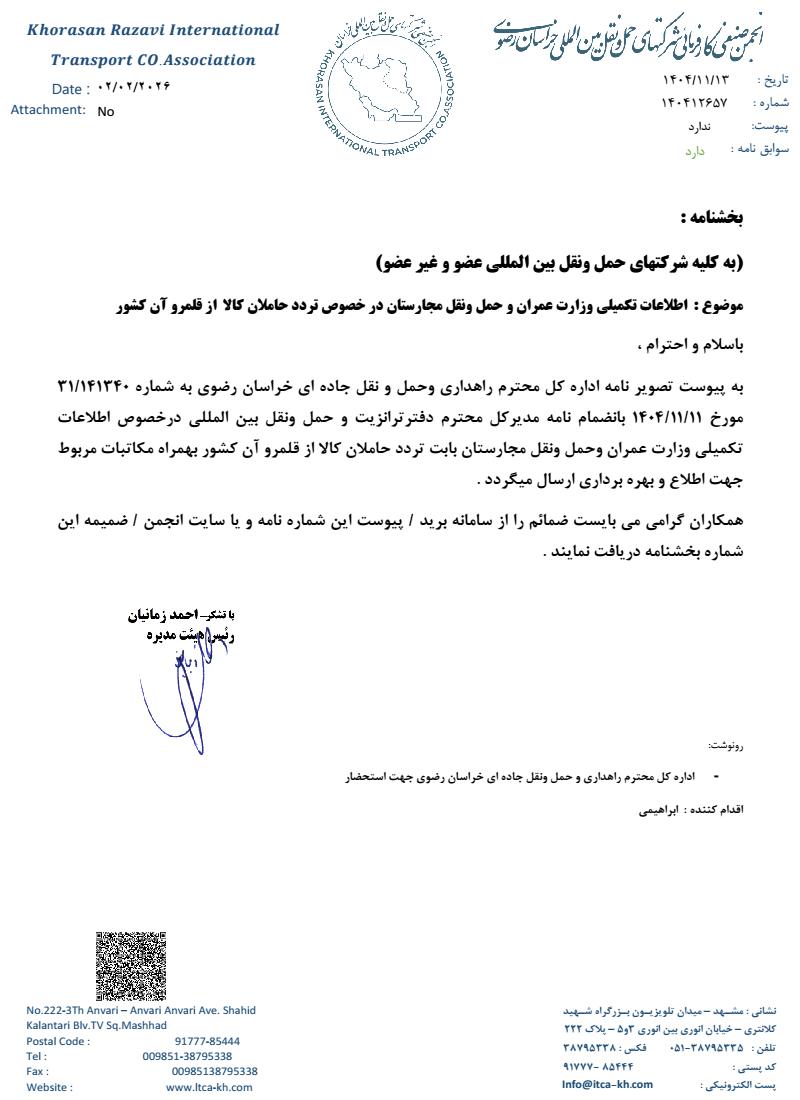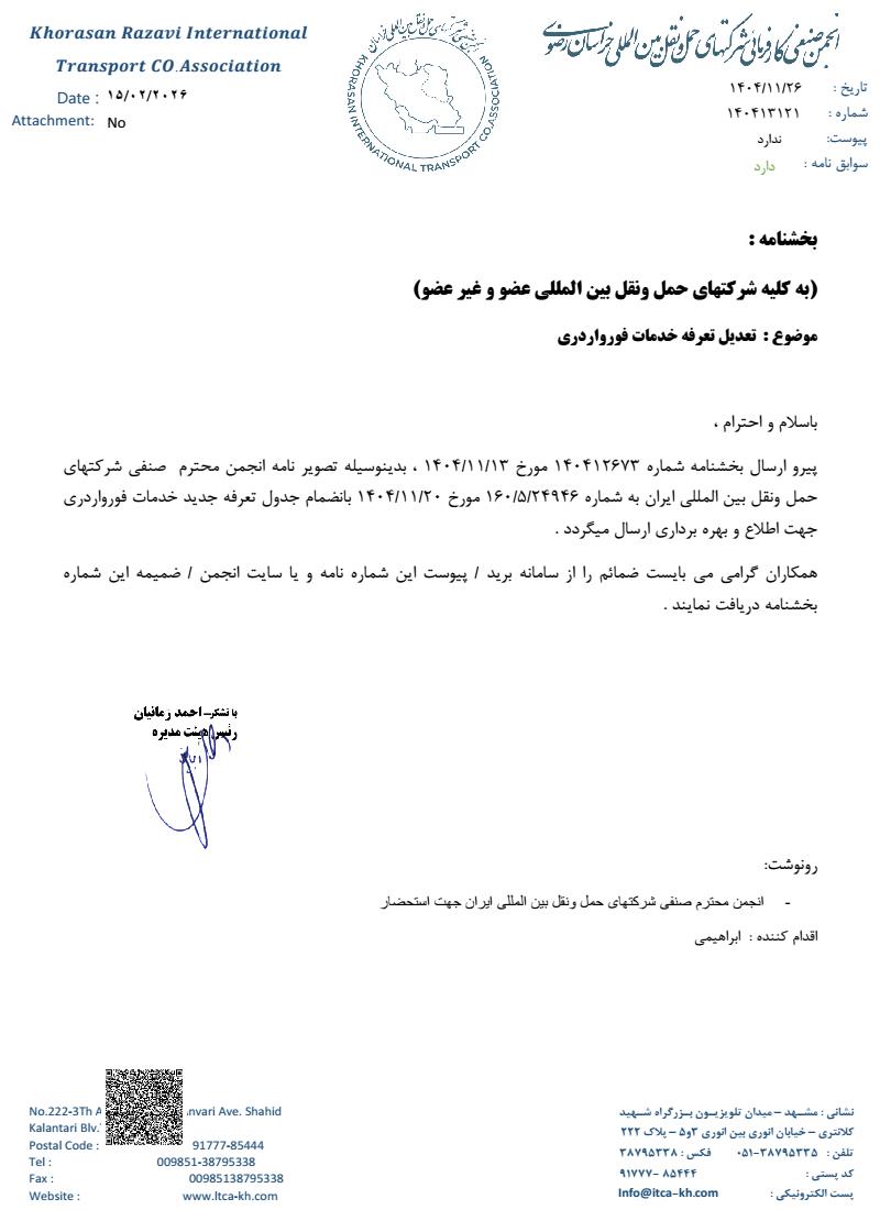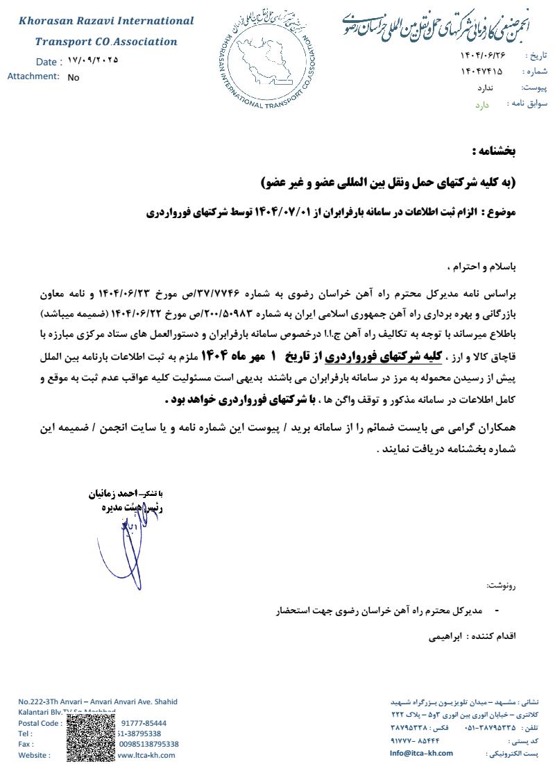 (به کلیه شرکتهای حمل ونقل بین المللی عضو و غی