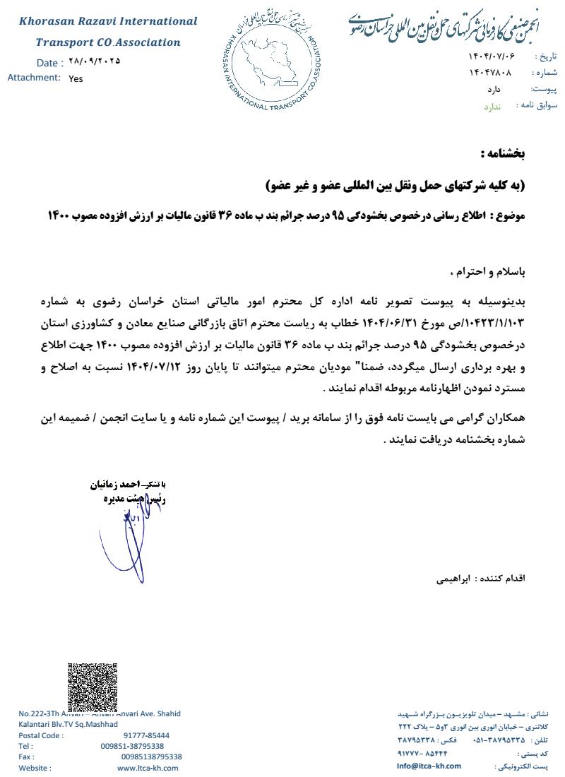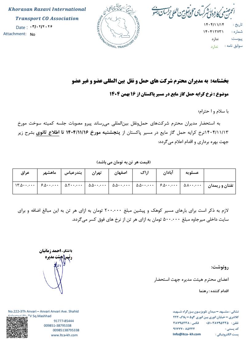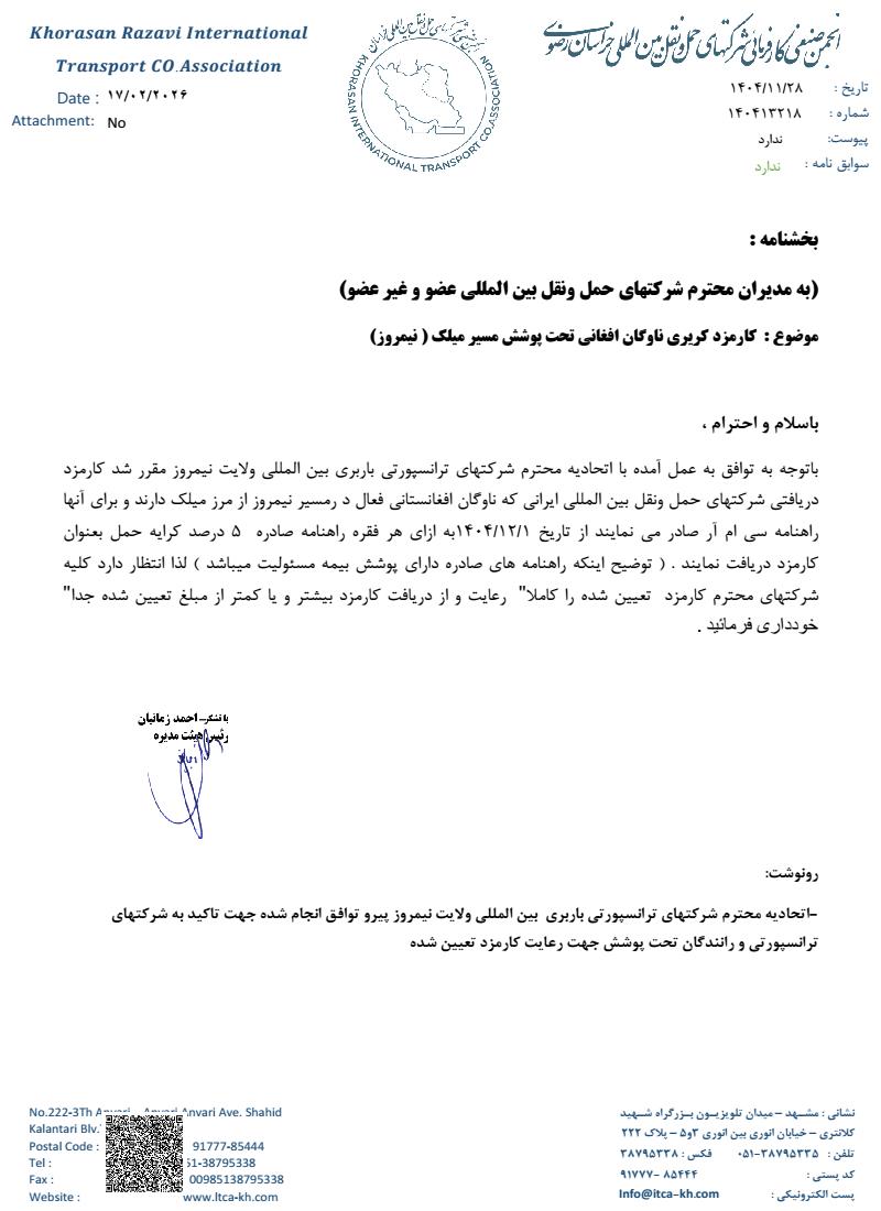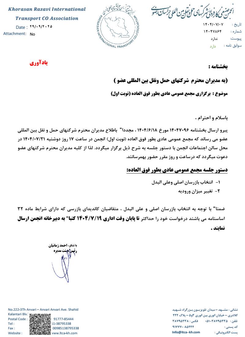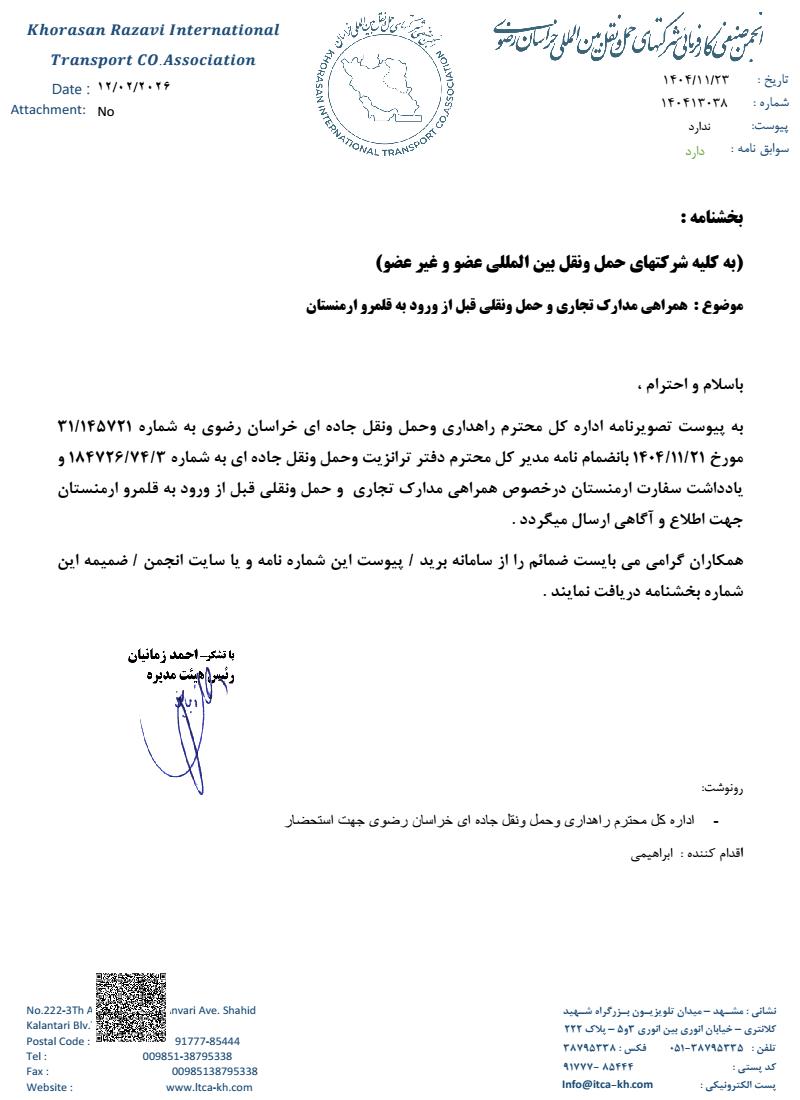(به کلیه شرکتهای حمل ونقل بین المللی عضو و غی