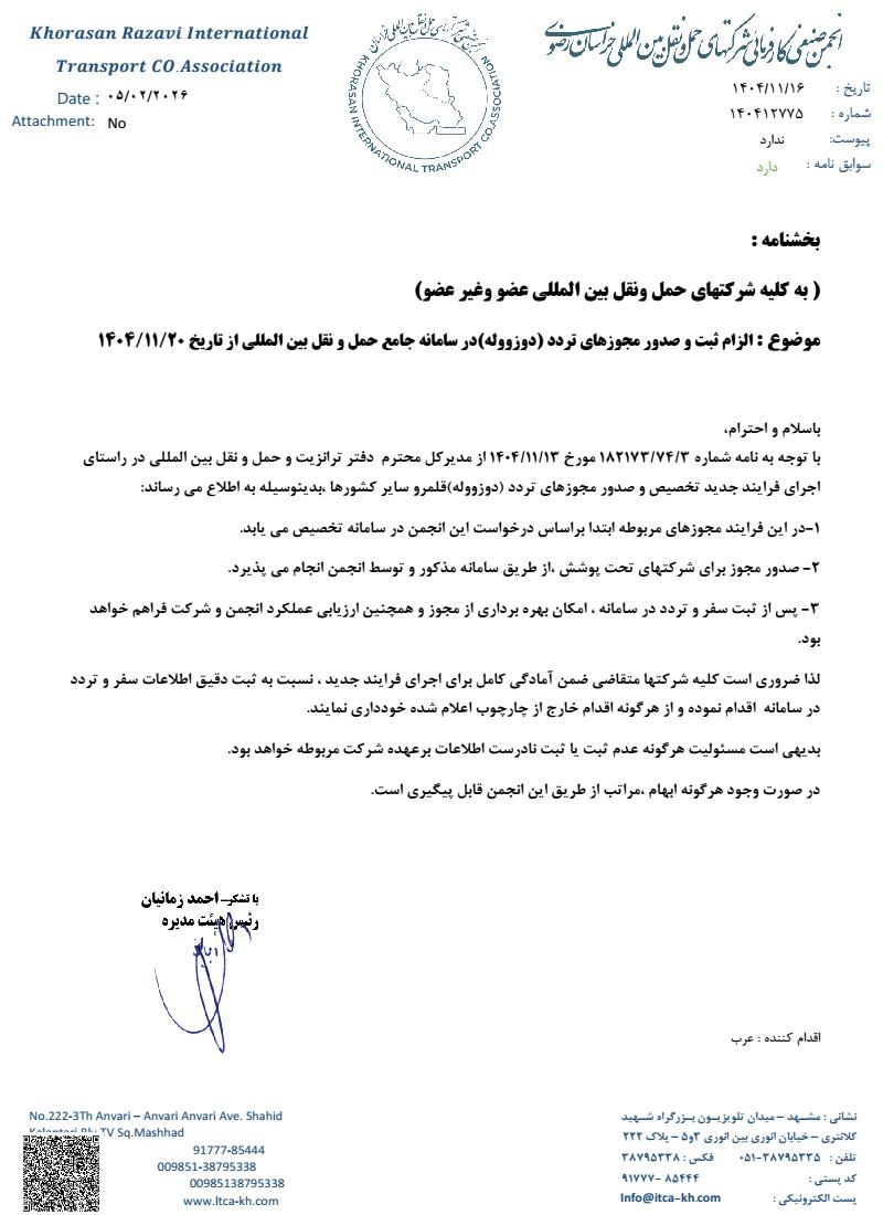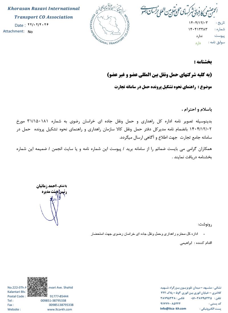 (به کلیه شرکتهای حمل ونقل بین المللی عضو )