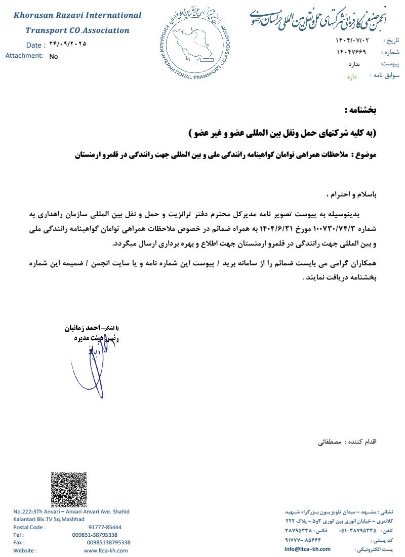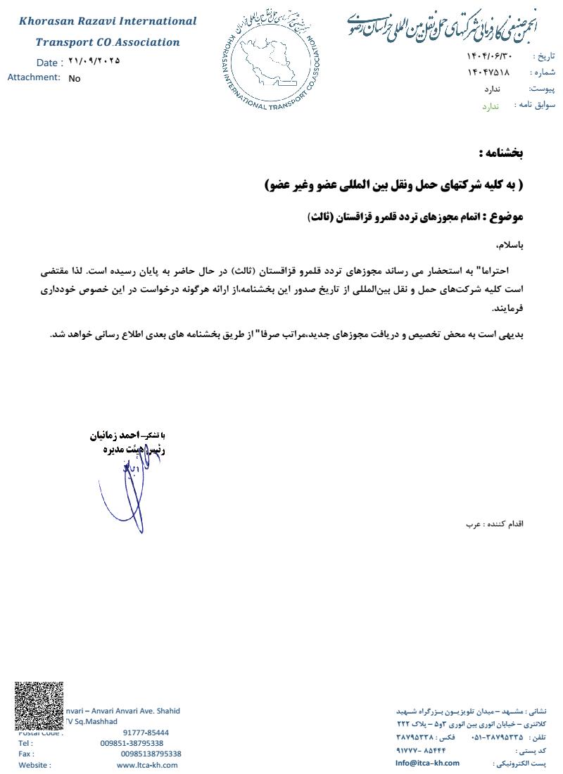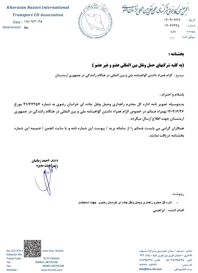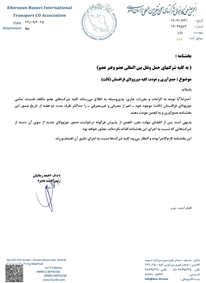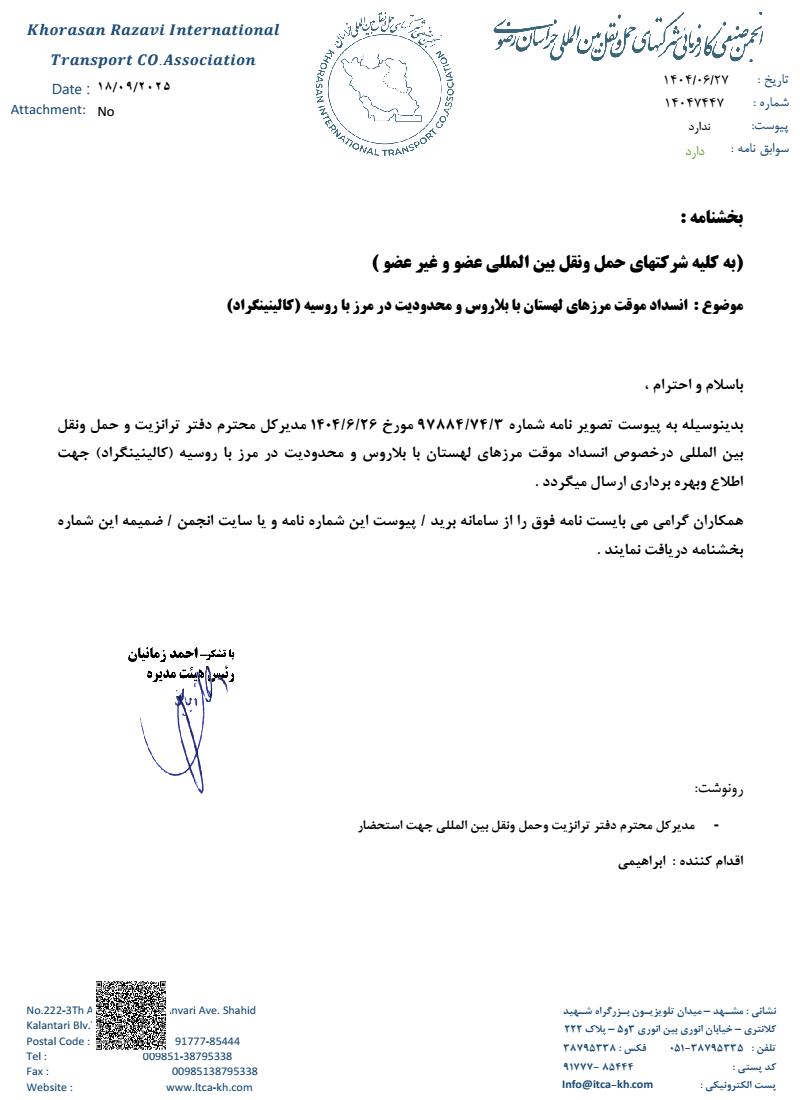 به کلیه شرکتهای حمل ونقل بین المللی عضو وغیر